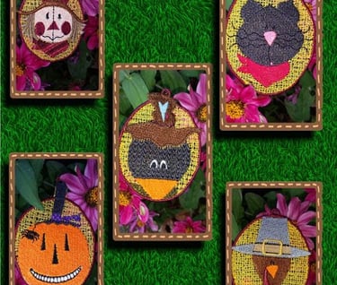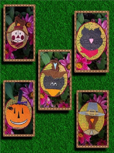 You receive 10 designs in this set. Each FSL ornament has an applique design (NOT freestanding) that compliments it.