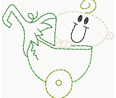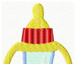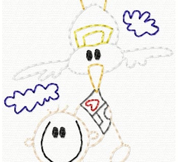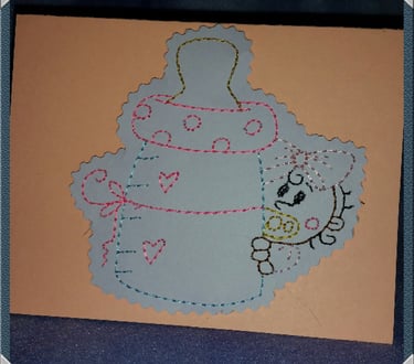 This little darling is peeking out from behind her bottle. You can stitch her out on fabric OR cardstock! What a great way to welcome a little one into the world with a pretty homemade card!
