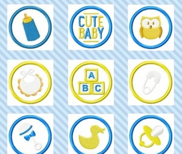 These 2 inch applique circles are the perfect size to add to baby bibs, small quilt squares, outfits or even burp cloths!