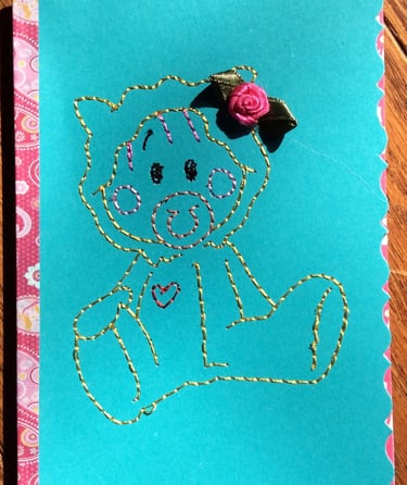 Take a look at these two cuties! You can stitch this design out on cards. You can make a card, thank you notes, invitations, announcements...you are the embroiderer, I just know you will find something creative to do with this design!