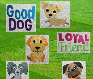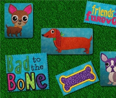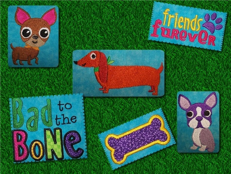 These little best friends ARE Bad to the Bone, aren't they? My tester (my sister) likes to make my designs colorful and they look GREAT!!! There are filled AND applique designs in this set.