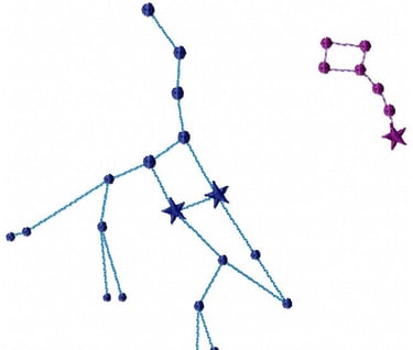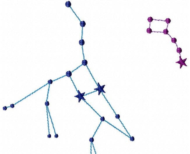 Ursa major and Ursa minor. Also known as Big Bear and Little Bear! I have this in three files. If you do not have the capabilities to stitch out in a larger hoop, you can stitch this great constellation in two separate files.