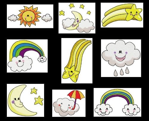 This is a fun and silly set perfect for theming up a child's room or nursery. Add these happy designs to bibs, towels burp cloths and napkins! This whole set just makes me happy.