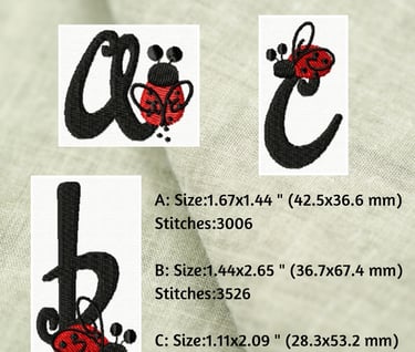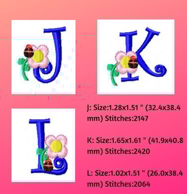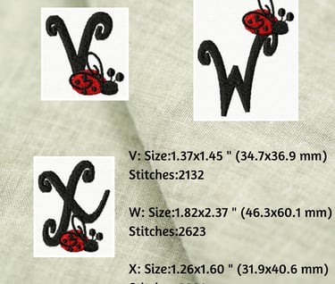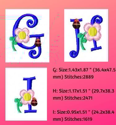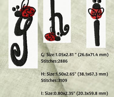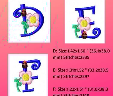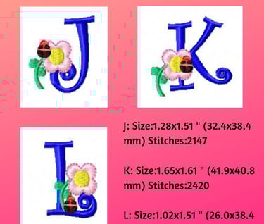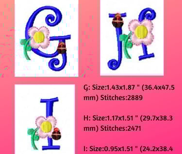 Keep in mind that when creating a word using these letters, there will be jump stitches. Click on the "shop now" button to see the photo before I cut the jump stitches in these two samples.