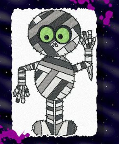 Use glow in the dark thread, stitch them out on felt and cut into triangles to hang as a banner across your door, or finish them off with felt on the back and stuff them and put them on a wreath.